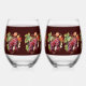 Purple Red Grapes Vines Burgundy Background Stemless Wine Glass