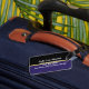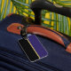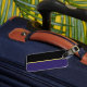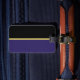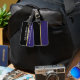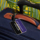 Easily distinguish your luggage with one of these purple, black, and gold luggage tags. Use the EZ template to personalize with your own name and address.