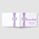Elegant purple ribbon and silver swans decorate this guestbook. Wedding guest books are fun for both the couple and their celebrants. Invite attendees to leave you well-wishes at your reception, and you're guaranteed to have a keepsake to look back on for years to come. Plus, your guests will get to leave their mark on your event, not to mention put in writing whatever they didn't have a chance to express in person on the big day. Personalize the book by changing the text in the fields provided. You can change font style, size, and colour.