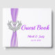 Purple Ribbon Silver Swans Wedding Guestbook