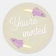 Introducing our charming Rockets & Moon Envelope Seal, designed to elevate your invitations to the next level. Featuring two delightful pale purple rockets orbiting in front of a radiant full moon, this seal captures the essence of playful adventure. The inviting text "You're invited" is elegantly rendered in a bold retro script, making it a perfect finishing touch for your upcoming celebration.