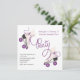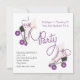 Invitation d'une fête anniversaire de enfant illustrant une paire de patins à rouleaux avec roues violettes, cordes et étoiles. Personnalisez le texte.