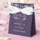 An elegant wedding favour box featuring pretty string lights and hand-drawn floral foliage on a purple background. A perfect way to say thank you to your guests! Designed by Thisisnotme©