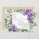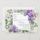 Lovely purple roses and eucalyptus leaves frame your wedding invitation and need to know information producing a gorgeous invite for family and friends.