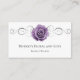 Personalize this unique card design to promote your floral or gift shop business with a Purple Rose Floral Shop Business Card. Business card design features grungy black and grey scrolls with a purple rose embellishment. Add your business information on the front and back for a unique business card to pass out to customers. Business card suitable for floral and/or gifts shops.