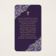 Elegant purple and gold floral memory card/funeral prayer card featuring a photo adorned with purple roses and baby's breath flowers on a dark purple background.