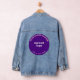 Veste en denim pour femmes avec votre nom d'entreprise, logo, ville ou ville et état. Veste que vous pouvez inclure dans vos produits promotionnels, cadeaux ou cadeaux offerts à vos clients ou clients pour faire de la publicité à votre entreprise ou pour promouvoir votre marque. Veste avec votre marque d'entreprise que vous pouvez utiliser pour développer la sensibilisation de marque. Veste en uniforme aussi de votre personnel. Les couleurs design sont des textes roses sur arrière - plan rond violet. Veuillez vérifier l'apparence après avoir téléchargé le logo et tapé des textes sur la taille que vous avez choisie. Si l'apparence vous plaît, vous pouvez passer votre commande maintenant. Si vous avez besoin de redimensionner et déplacer le logo et les textes, s'il vous plaît changer dans l'outil de conception. Vous pouvez également modifier le style de police, la couleur de police et la couleur de l'arrière - plan de forme ronde dans l'outil de conception.