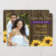 AJOUTEZ VOTRE PHOTO FIANÇAILLES PRÉFÉRÉE À CE PAYS ET SENTEZ-VOUS RUSTIQUE ENREGISTREZ LES CARTES DE DATE AVEC UNE BARRE EN BOIS ET/OU UN ARRIÈRE - PLAN EN BOIS AVEC TÊTE NAÏLE, PURPLE PLUM IMPRIMÉ BANNER RIBBON ET UN BOUQUET DE SUNFLOWER LE FOND DE LA CARTE. LE DOS DE CETTE INVITATION PEUT ÊTRE CUSTOMISÉ AVEC VOTRE PROPRE HISTOIRE D'AMOUR. CEUX-CI SAUVENT LES DATES COMPLÉMENT UNE FERME, FERME, BARN OU BARNYARD MARIAGE THÈME. CONTACTEZ LE DESIGNER, CHRISSYH@CHRISSYHSTUDIOS.COM SI VOUS AVEZ BESOIN D'AIDE POUR FORMATER LE TEXTE À L'ARRIÈRE DE CETTE CARTE. CONCEPTION © CHRISSY H. STUDIOS, LLC. Tous droits réservés.