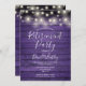 Purple Rustic Wood String Lights Retirement Party Invitation