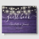 Purple Rustic Wood String Lights Script Wedding Guest Book