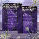 This purple rustic barn wood string lights wedding invitation can be personalized with your information in modern typography and wedding website QR code on the reverse. Designed by Thisisnotme©