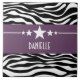 Trendy and modern Sassy Star Zebra Tile featuring a chic black and white zebra print background and a bold purple border adorned with a fun star motif. This girly design may be customized with the personalized text of your choosing. Click "Customize It" to find more personalization options.