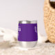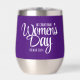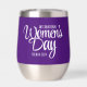 Celebrate IWD (International Women's Day) on March 8th with this purple stainless steel stemless wine tumbler, which features this special day in an elegant upright script. Reverse shows identical design.