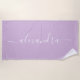 Stylish beach towel with an elegant, white girly script name on a light purple background. Personalize with your name.
