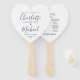 These fans were exactly as pictured. The quality is great. Perfect favor for a wedding!...I will make assembly a little easier by using a hot glue gun and finish them off with a ribbon. Beautifully printed. Crisp and clear text.