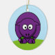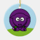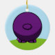 A cute cartoon purple sheep on a round ornament. The flip side of the ornament shows the tail end of the lamb.