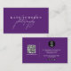 A beautiful design incorporating your business logo and your QR Code. This elegant purple signature script business card is ideal for all types of businesses. A simple and professional way to introduce your business. Social media icons included in the design of this business card for you to use. Personalize your details to create your own unique business card.