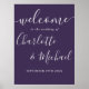 Featuring signature style names, this elegant purple welcome sign can be personalized with your information in chic lettering. Designed by Thisisnotme©