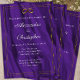 This invitation is more than just a card; it's an invitation to a world of elegance and romance. The background is a mesmerizing tapestry of rippling purple silk, its soft folds catching the light and hinting at the opulence to come. This rich hue is a symbol of royalty, creativity, and passion – setting the perfect tone for your special day. Framing this masterpiece is a double gold border, its gleaming lines adding a touch of timeless sophistication. A pair of shiny golden wedding rings, nestled within the frame, are a subtle yet powerful symbol of your everlasting love. Together, these elements create a visual masterpiece that's both eye-catching and unforgettable. Imagine the moment your guests receive this invitation. They'll feel a sense of anticipation, their fingers tracing the delicate gold frame and the soft texture of the simulated silk. They'll know, from the moment they open the envelope, that they're invited to a wedding that will be nothing short of extraordinary.