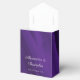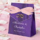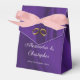 A very stylish purple wedding favour gift bag, featuring a luxe pattern of swirling, purple silk. There is a pair of gold wedding bands on the top below the ribbon, and all details including bride and groom's names and wedding date may be easily personalized in the customize options above. Please note this is actually part of a larger matching wedding suite, which includes matching invitation, announcements, save the date and more here: https://www.zazzle.com/collections/purple_silk_and_gold_wedding_rings-119740320521525107