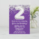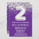Purple and silver 2th birthday party invitation age 2 birthday party invitation with glitter and modern script writing and fun foil balloons.