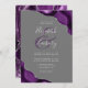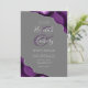 A purple watercolor agate design trimmed with faux silver glitter appears in two corners of this elegant design. Personalize it with the couple's names in silver grey handwriting script over a large purple ampersand. Add the wedding details in copperplate and italic fonts on a grey background. The reverse side features a matching purple and silver agate design.