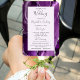 This elegant, modern wedding program fan features a purple agate background trimmed with silver faux glitter. The text appears in elegant charcoal grey handwriting and copperplate fonts on a pale lavender rectangle.