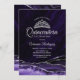 Purple and silver agate quinceanera invitation. Elegant modern design featuring green watercolor agate marble geode background, faux glitter silver, tiara confetti and typography script font. Trendy invite card perfect for a stylish 15th bday celebration. Printed Zazzle invitations or instant download digital printable template.