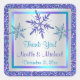 This festive and inexpensive PRINTED glittery purple, turquoise blue, teal, pink, and silver grey snowflakes wedding favour sticker and/or envelope seal matches the winter or Christmas wedding invitation shown below.