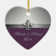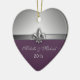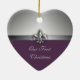 Purple Silver Fleur de Lis Couple First Christmas Ceramic Ornament