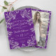 Elegant Sweet Sixteen Birthday Party invitation template with Purple & Silver Floral motif, custom Photo & modern typography script.