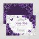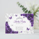 Purple silver floral Quinceanera RSVP reply card. Features, script font, silver butterflies, watercolor roses and tiara. Perfect for an elegant princess style glam celebration. Personalize with your own details.