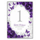 Purple silver Quinceanera celebration table number cards. Features, script font, silver butterflies, watercolor roses and tiara. Perfect for an elegant princess style glam celebration. Personalize with your own details. Printed Zazzle invitations or instant download digital printable template.