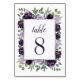 Purple Silver Floral Watercolor Eucalyptus Wedding Table Number