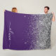 Purple Silver Glitter Girly Glam Monogram Fleece Blanket