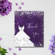 Un carte de remerciements d'anniversaire féminin et élégant. Une couleur arrière - plan violette et inégale. Avec une parties scintillant en faux argent, des étincelles et des perches blanches. Sur le devant un script écrit à grande main et le texte : Merci. Retour : Personnalisez et ajoutez Votre note de remerciement et votre nom. Le nom est écrit avec un script de style moderne écrit à la main.