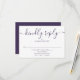 A simple elegant purple signature script RSVP card with your details set in chic typography. Designed by Thisisnotme©