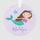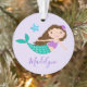 Cet ornement personnalisé de Noël de sirène présente une jolie sirène blanche et un motif d'étoiles de mer sur un arrière - plan pastel violet. Le texte du nom est dans une police de script moderne. Le design est le même de part et d'autre. Customisez le texte avec un nom.