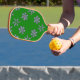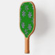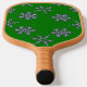 Purple snowflakes on green pickleball paddle