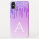 Purple Ombre Sparkle and Faux Dripping Glitter Girly Modern Monogram First Name and Initial Smart Phone Case. Please contact the designer for matching items