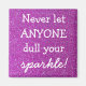 This cute little magnet reminds you to "Never let ANYONE dull your sparkle!" with a sparkly purple glitter background.