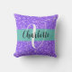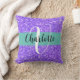 Purple sparkling glitter monogrammed throw pillow