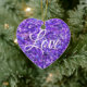 Purple sparkling heart, love glitter valentine ceramic ornament