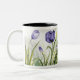 Original watercolor painting by Sandra Gale, featuring several violet and purple tulip flowers swaying in the garden's spring air. This slightly abstract painting loosely suggests bright watery flowers using just a few transparent watercolors. Perfect for anyone who wants a little lite floral springtime lift all year round.
