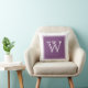 Add your initials or other text to customize this simple and modern Square Monogram Throw Pillow in purple and white. This trendy and chic pillow would add a classic touch to any decor or make a perfect gift.
