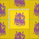 Large, purple squid in the centre, overlaid over a bright yellow polka dot pattern