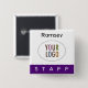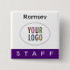 Purple Staff Pinback Name Badge Square Logo Button