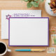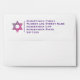 Purple Star of David envelopes suitable to use with HOLOCAUST REMEMBRANCE DAY cards and invitations. Design shows a tiled pattern of coloured Star of David against a purple background on the inside, and the back top flap has another Star of David plus customizable address for you to replace with yours. On the front there is a purple border. Matching items available. Return address labels available separately.