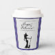 Celebrate the season in style with this festive Purple Starburst Witch Halloween Paper Cup. Featuring a charming witch silhouette standing beside her broomstick against a radiant starburst background. Playful smiling jack-o’-lanterns add a fun Halloween vibe, while “Happy Halloween” in elegant script complements the whimsical curvy witch design. Perfect for serving fall beverages at Halloween gatherings, this cup brings spooky spirit and seasonal cheer to every sip.