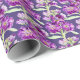 Purple stocks botanical floral watercolor art wrapping paper. This pretty Matthiola incana flower wrap was created from an original watercolor painting by Sarah Trett for www.mylittleeden.com